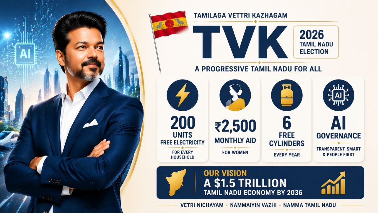 Vijay’s party is positioning itself as a tech-savvy political force. TVK’s manifesto proposes the establishment of an AI ministry, AI-powered governance services, and the creation of an AI university. The party’s long-term vision includes making Tamil Nadu a $1.5 trillion economy by 2036. With a clear focus on innovation and digital transformation, TVK aims to implement AI in various sectors, including public service delivery and urban planning.